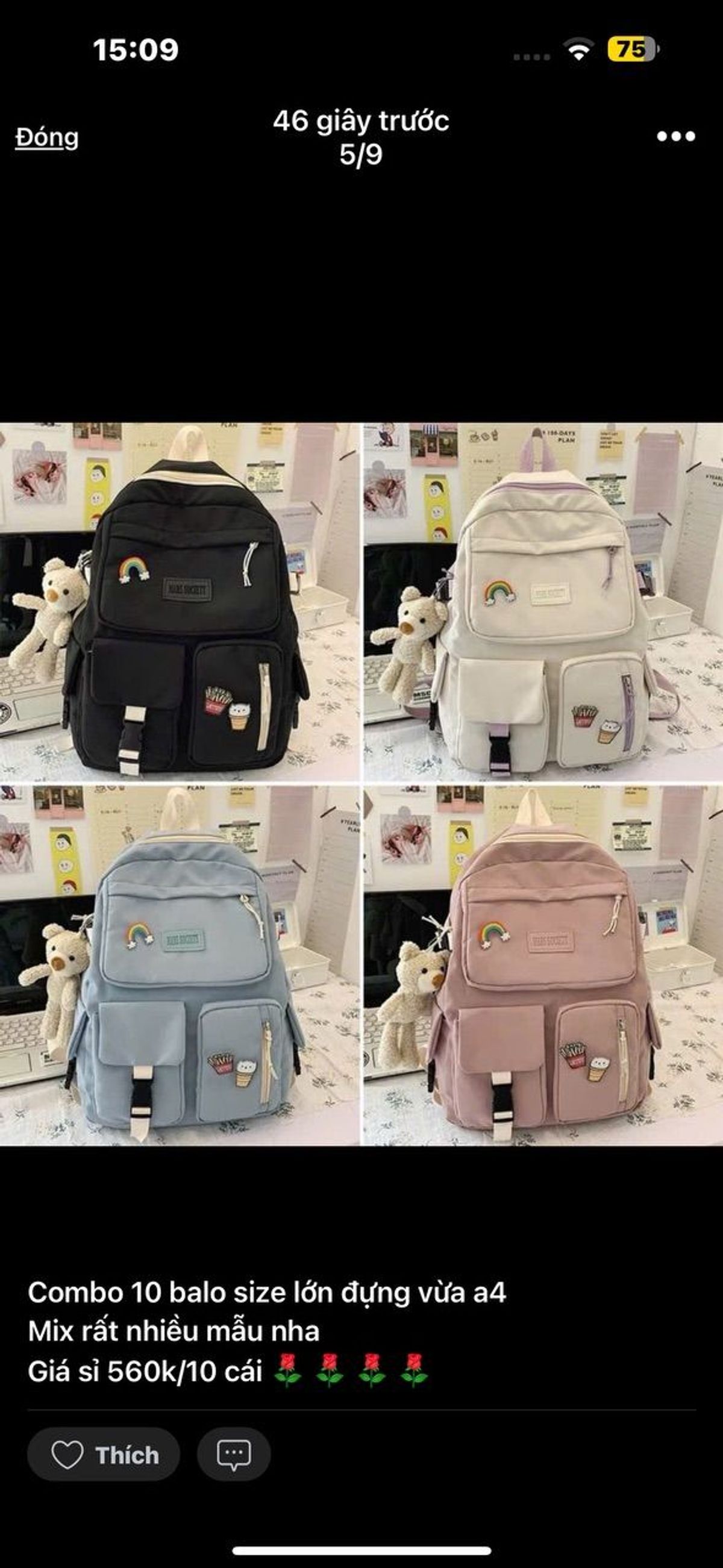 Combo 10 balo size lớn đựng vừa a4Mix rất nhiều mẫu nhaGiá sỉ 560k/10 cái