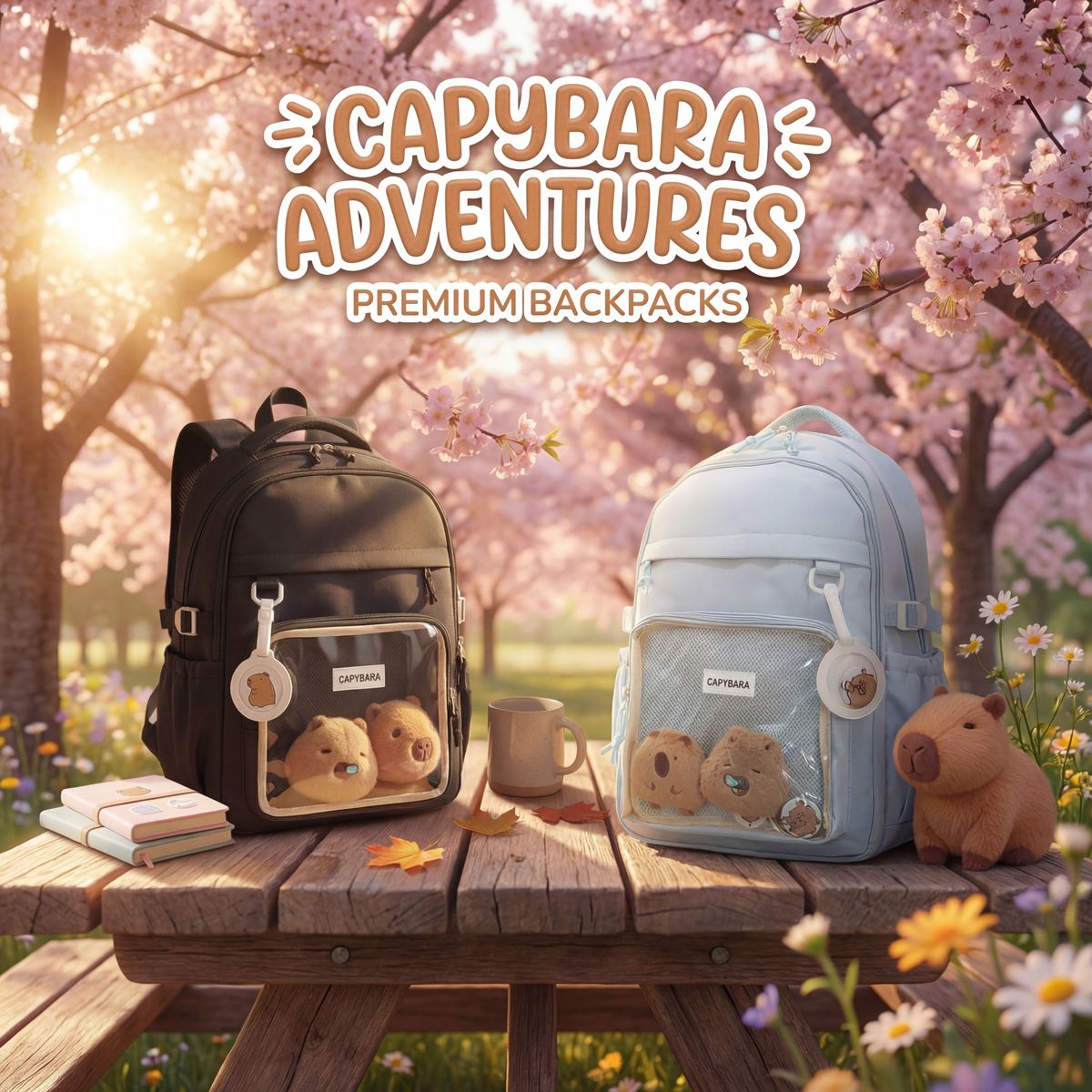 Balo A1685 nổi bật với họa tiết capipara phối kính ngộ nghĩnh, phong cách đơn giản nhưng không hề nhàm chán, phù hợp cho học sinh trung học đi học mỗi ngày.