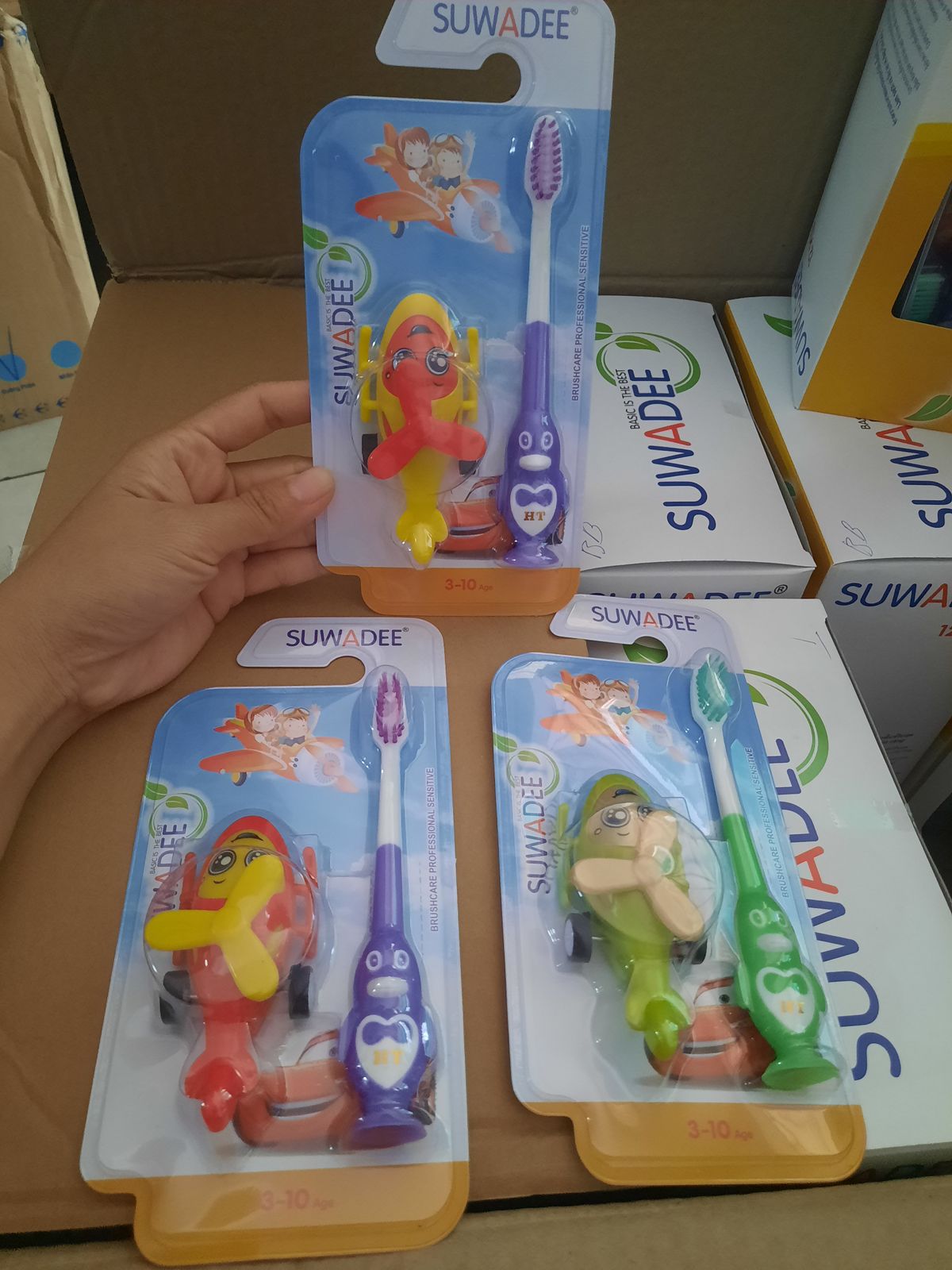 Bàn chải đánh răng kèm đồ chơi. Mỗi chiếc bàn chải được tặng kèm 1 búp bê, hoặc một xe ô tô, hoặc 1 xe tăng...
