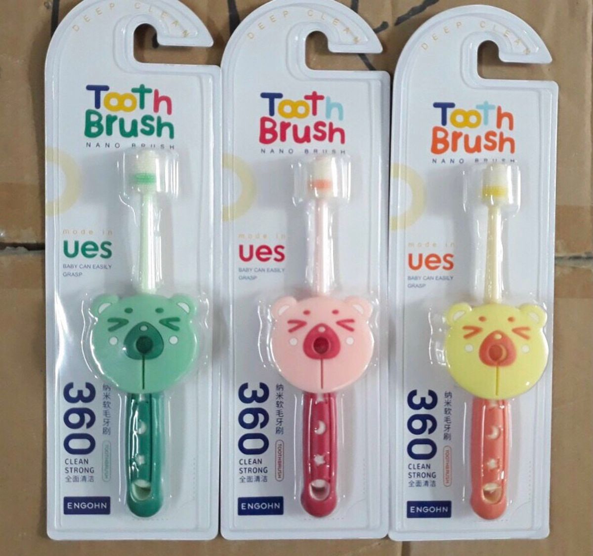 Mặt gấu đáng yêu giúp ngăn không cho bàn chải vào sâu trong họng bé, đồng thời kích thích hứng thú đánh răng ở trẻ.