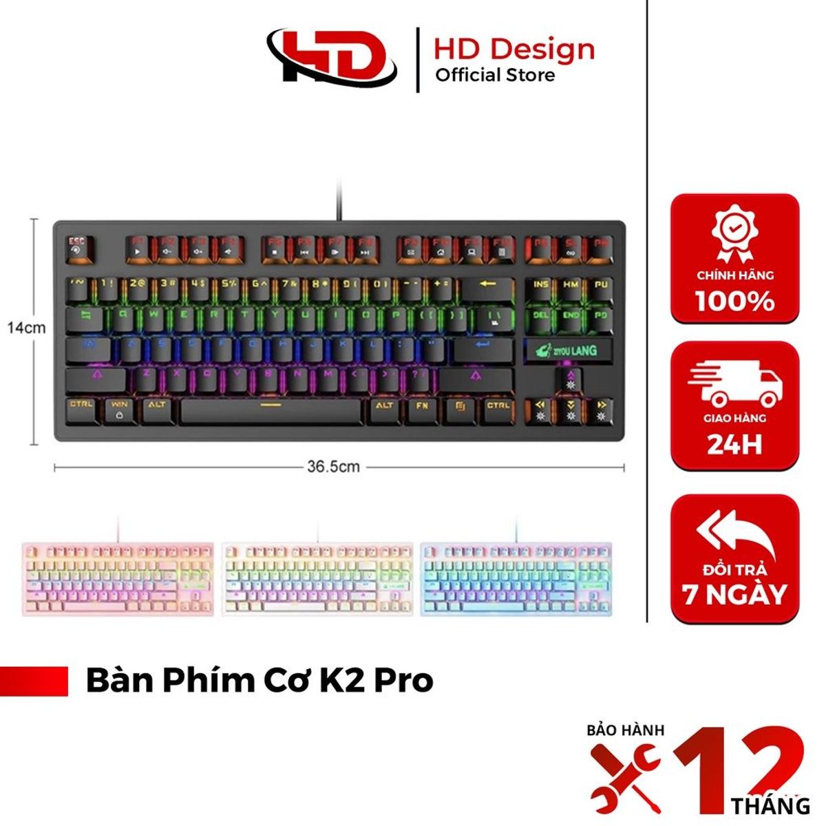Bàn Phím Cơ Cho Máy Tính K2 Pro Led RGB - 10 Chế Độ Led Khác Nhau - Chính Hãng HD DESIGN