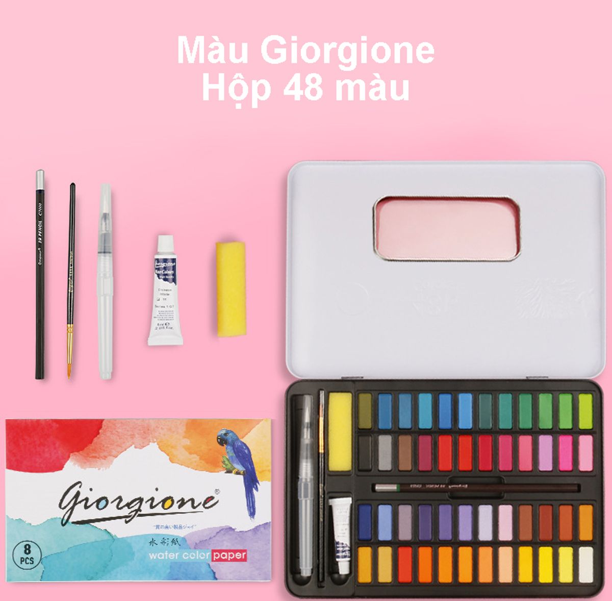 Bộ màu nước hộp sắt bắt mắt có thể dùng làm quà tặng, biếu vô cùng tinh tế. Tặng kèm giấy vẽ màu nước cùng hãng.