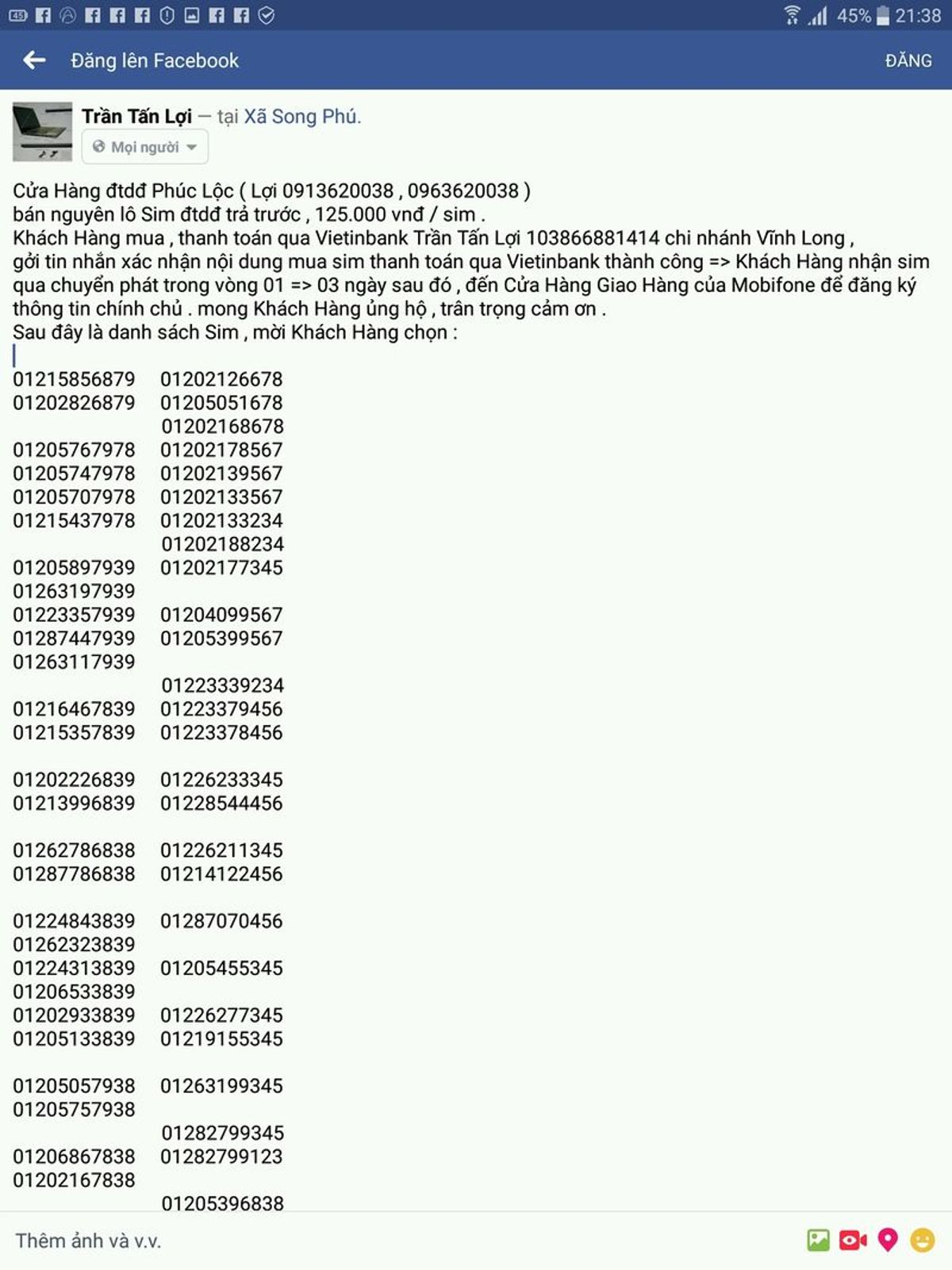 bán nguyên lô Sim trả trước , 125.000 vnđ / sim .