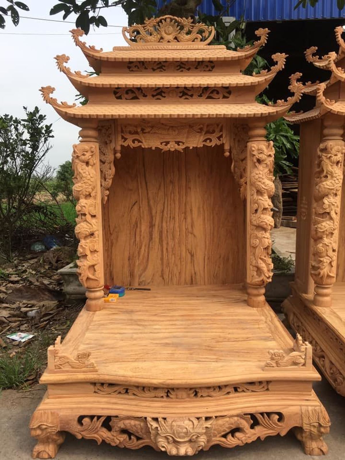 Bàn Thờ Thần Tài – Ông Địa: Trạm trổ tinh xảo, phù hợp phong thủy >> Gia Tăng Tài Lộc - Kích Thước : 69-81-127 81-89-147 - Chất Liệu : Gỗ Tự Nhiên Gõ Đỏ - Sản phẩm bảo hành 5 năm