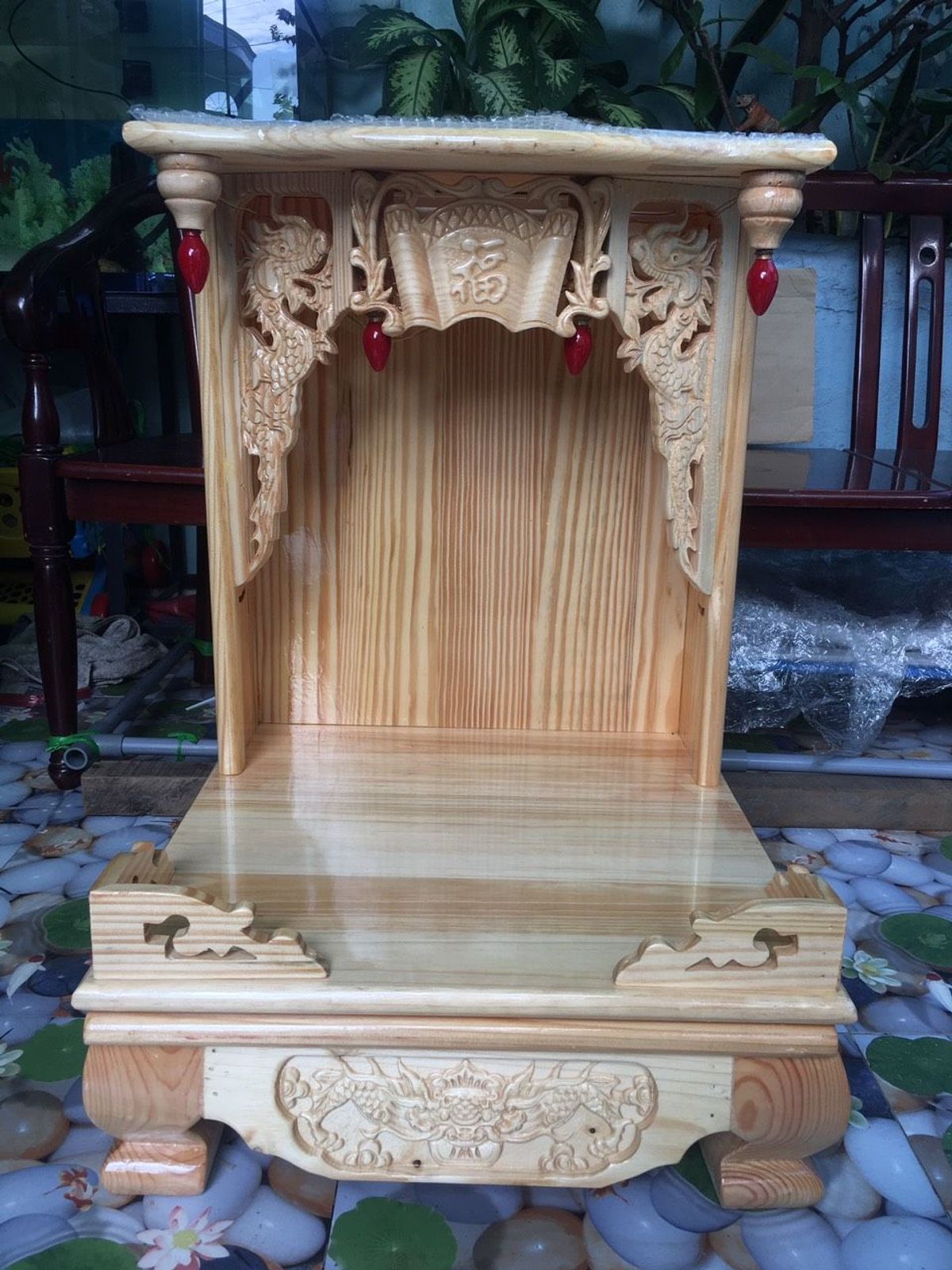 bàn thờ thần tài gỗ thông mỹ ngang 48 sâu 48 cao 68 .