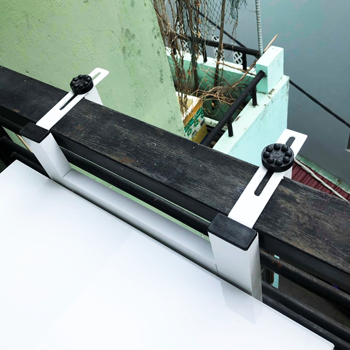 Chân kim loại chịu lực, cứng cáp, chống gỉ bám chặt vào lan can ban công