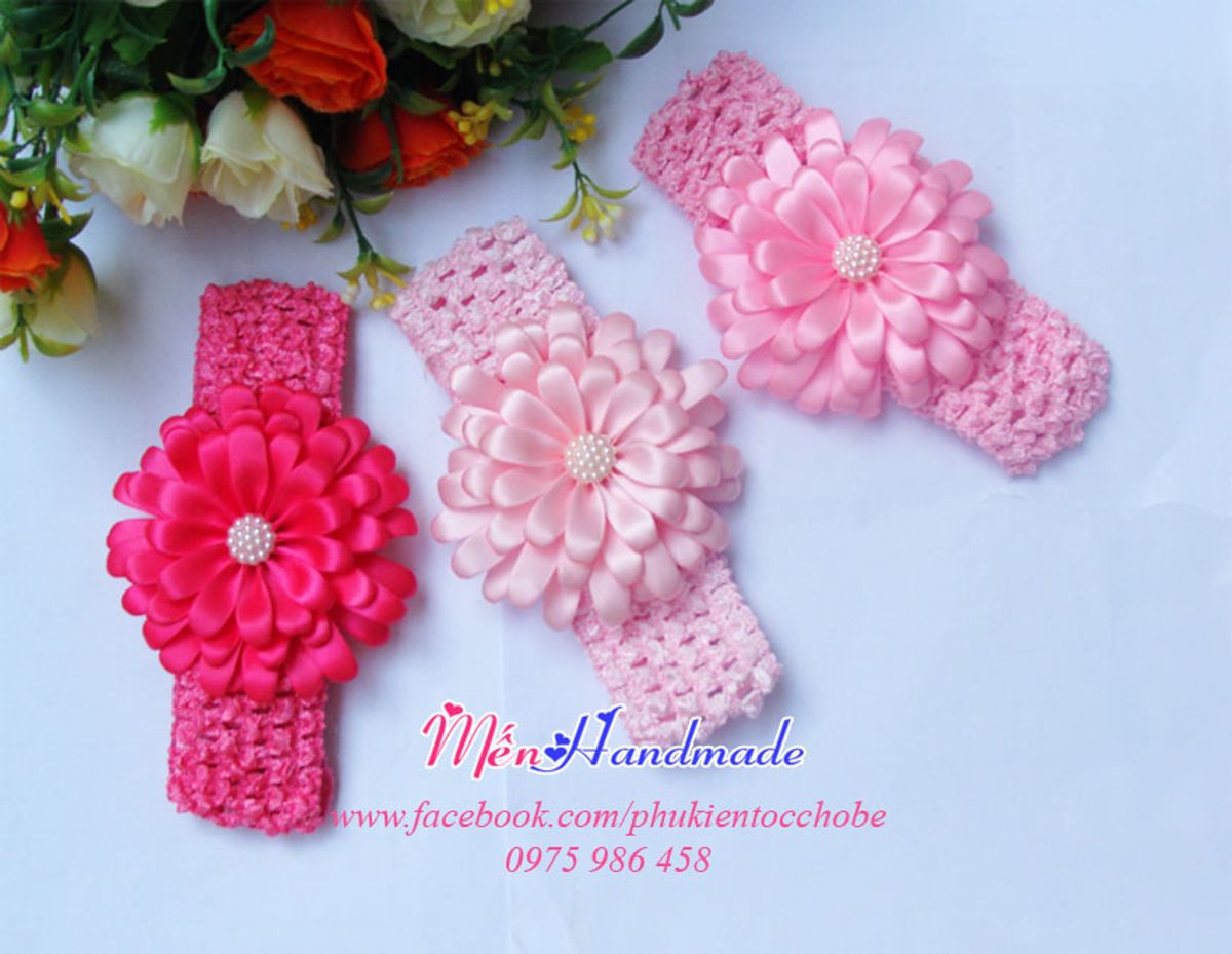 Chất liệu: Băng đô lưới 4x14cm, mềm mại và co dãn tốt kết hợp hoa cúc được làm thủ công rất tỉ mỉ và tinh tế. Hoa có nhiều màu, có thể làm theo màu sắc theo yêu cầu của khách hàng.