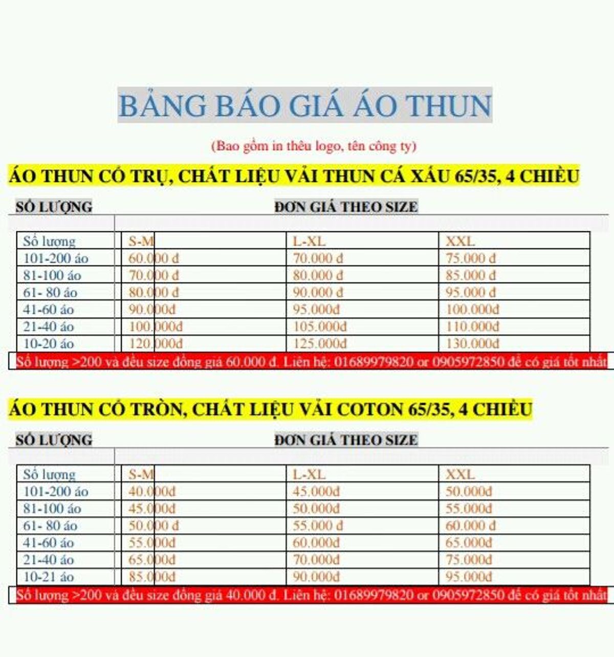 quy khach co the de dat hang ao thun theo ban gia co san hoac se duoc bao gia chi tiet cho tung loai vai