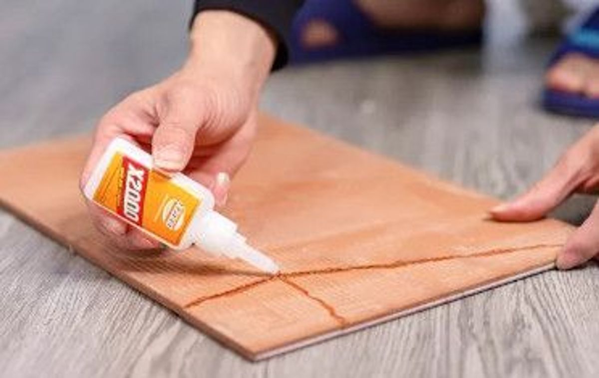 - Bước 2 : Nhỏ 1 giọt keo vào lỗ thủng