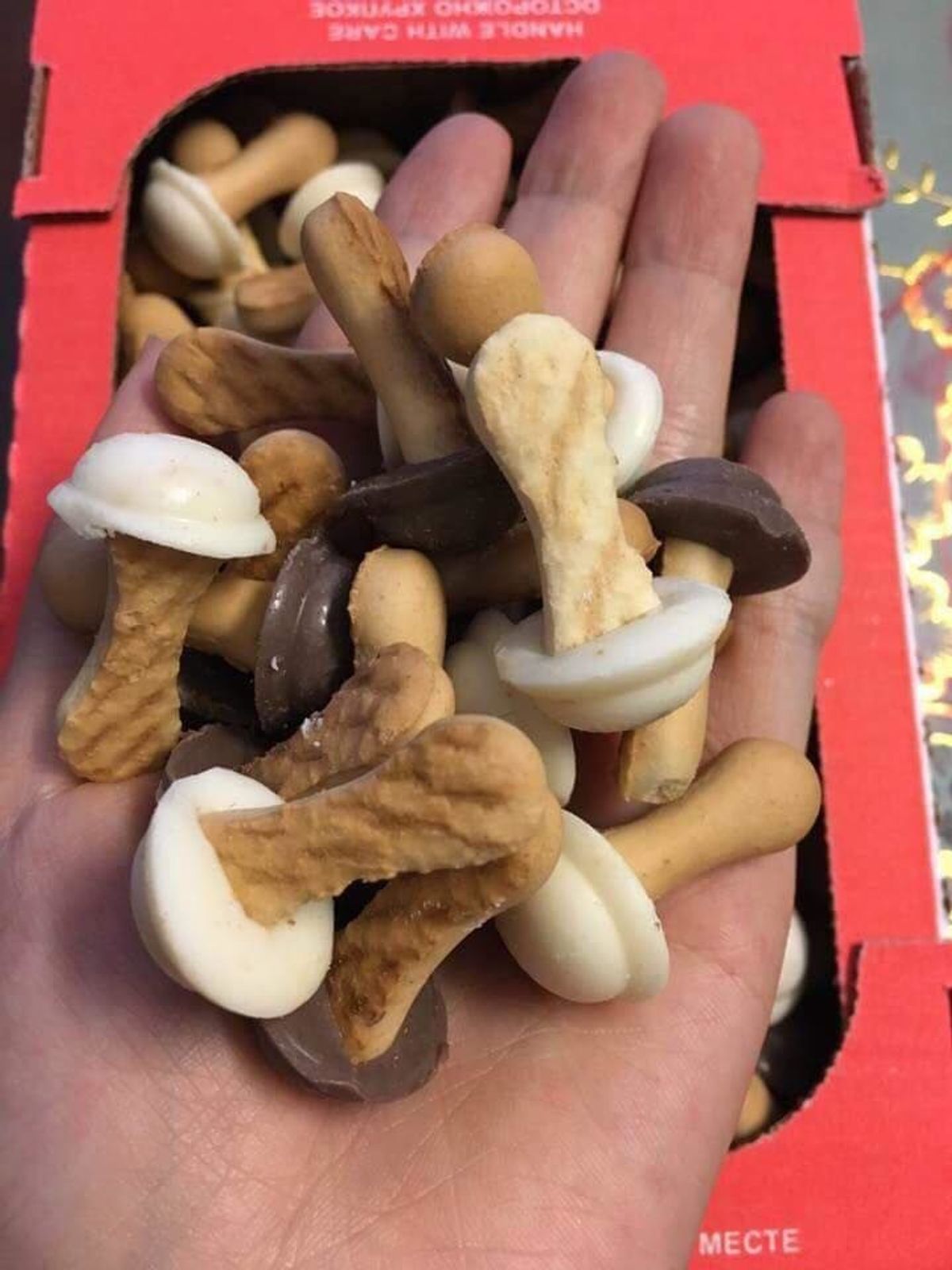 - Bánh quy nấm socola Nga có hình cây nấm đáng yêu xinh xinh rất nhiều trẻ em yêu thích,không những là món ăn vặt tốt cho sự phát triển của trẻ nhỏ mà còn là món quà dùng để biếu tặng người thân trong gia đình nhất là vào những dịp lễ.