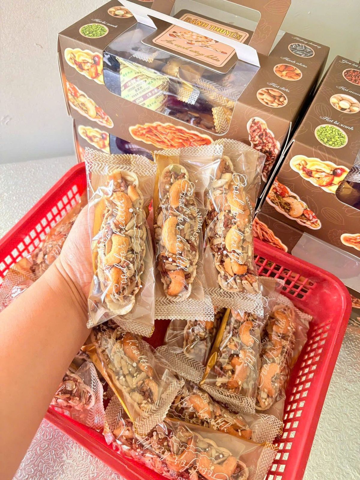 🥧 Bánh thuyền thơm ngon bên trong có: gạo lứt, hướng dương, macca, hạnh nhân, bí xanh, hạt điều..