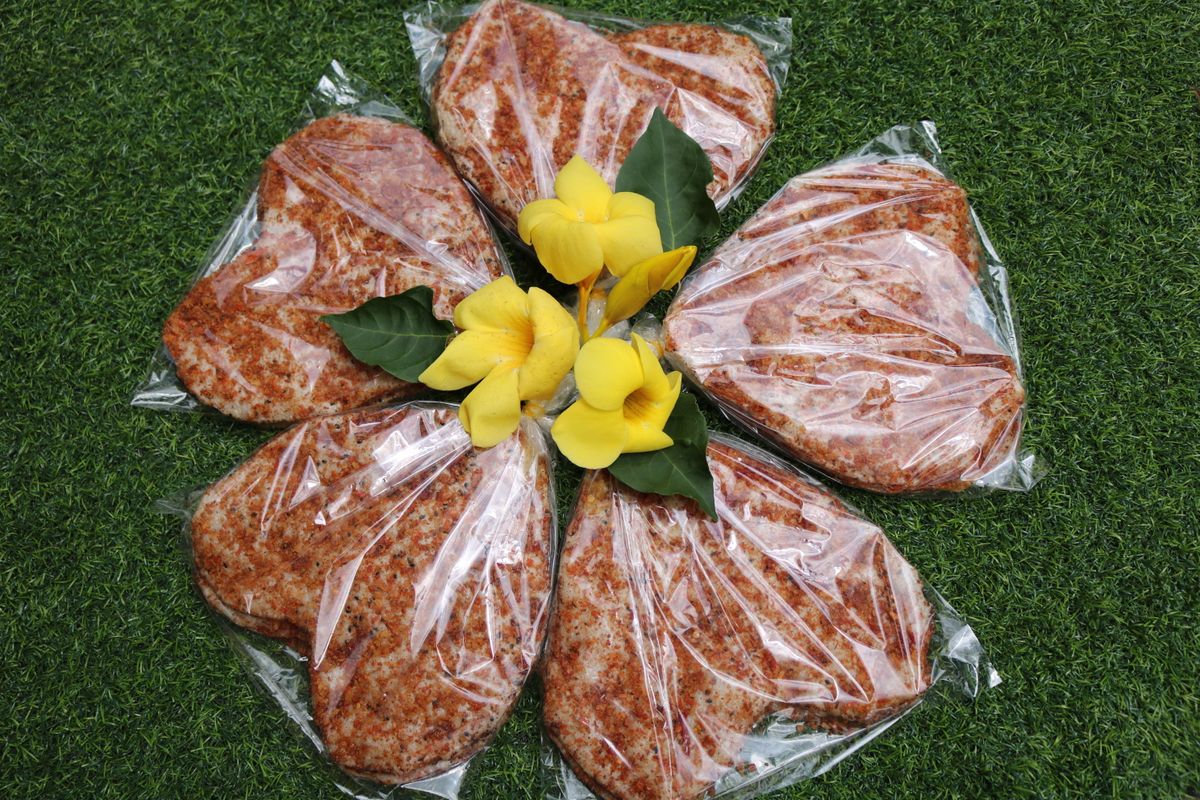 Bánh tráng bò khô hình trái tim siêu cute nhé: bánh tráng nướng than giòn tan, trên mặt được rắc đầy bò khô vàng ươm, thơm lừng, cay hít hà, ăn mãi không ngán