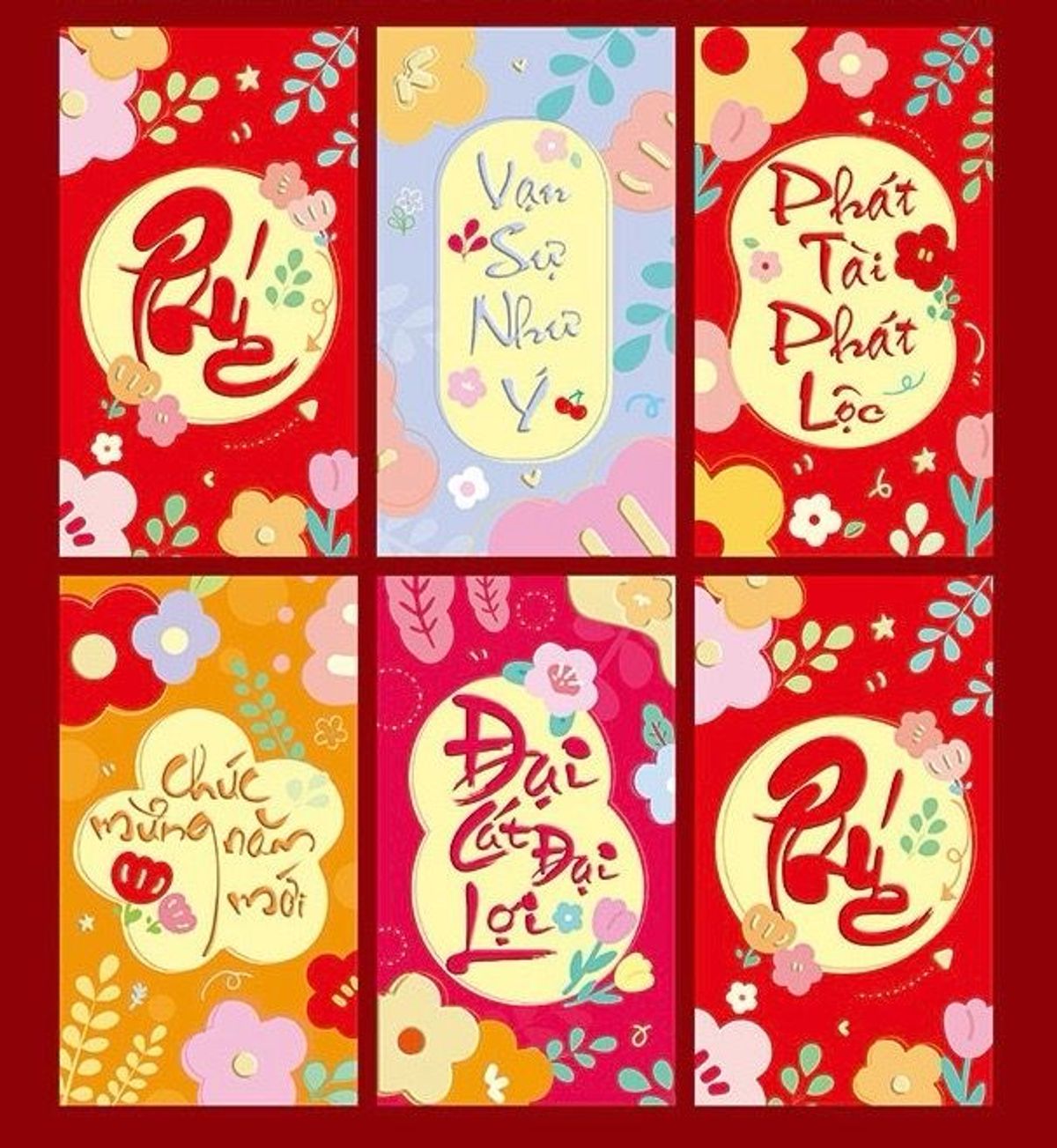 Bao lì xì 2026 hoa chữ in nổi phát tài phát lộc 1set/6cai 6 mẫu giá sỉ - giá bán buôn
