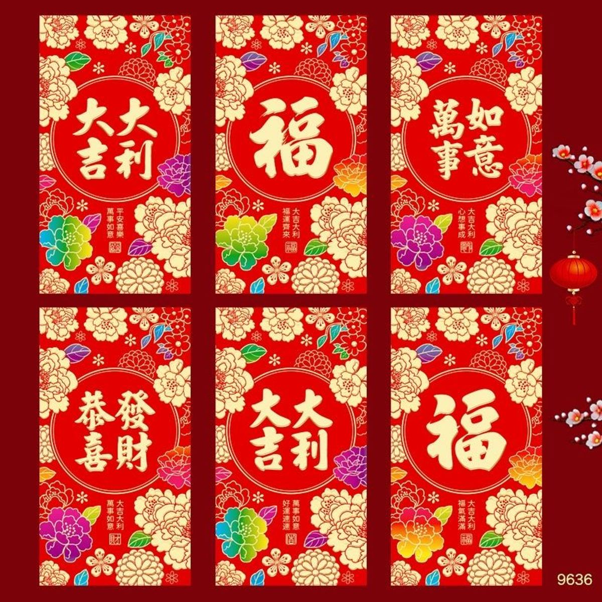 Bao lì xì đỏ hoạ tiết vàng 2026 mới, thanh lịch sang trọng 1set/6cai 6mẫu giá sỉ - giá bán buôn