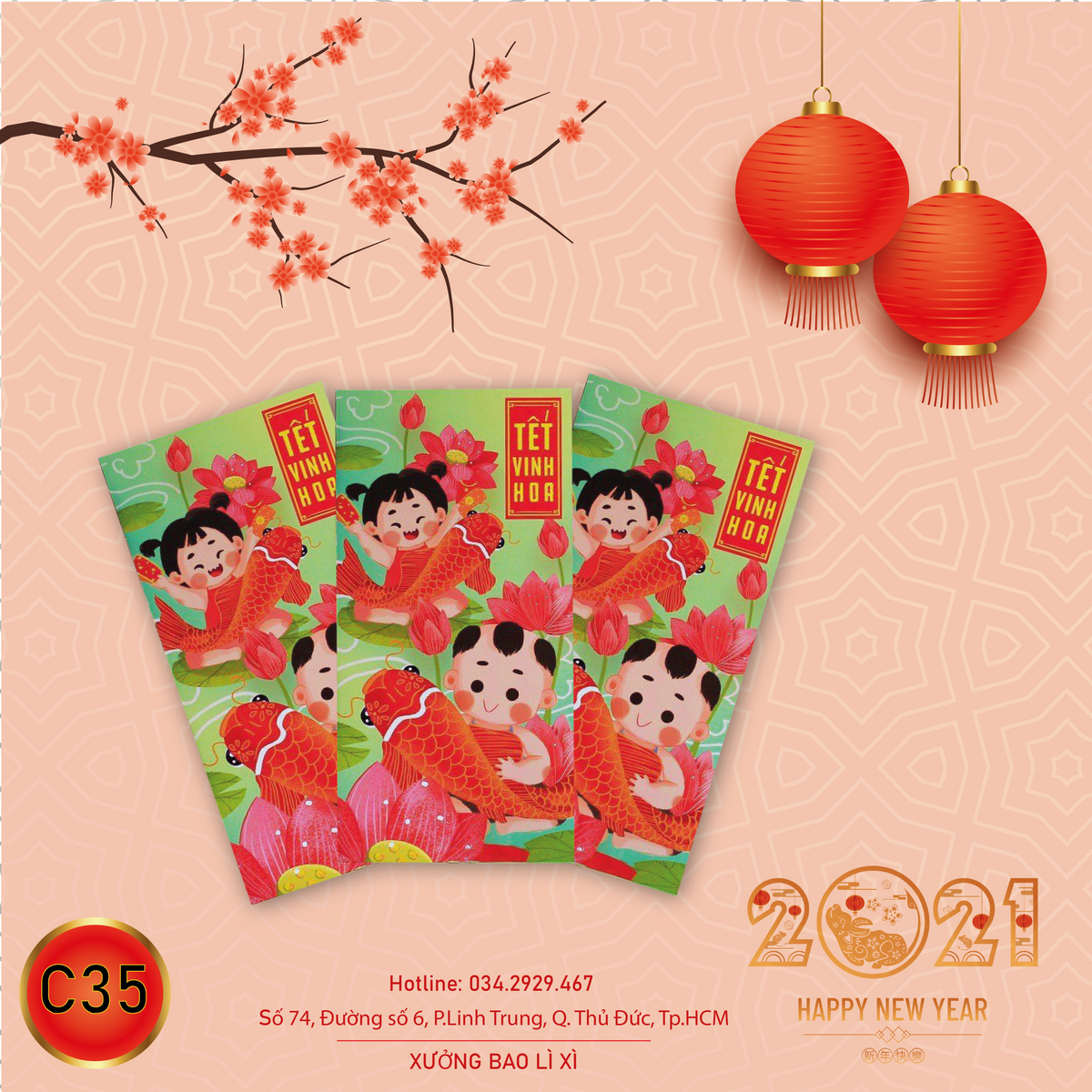 Kích thước bao lì xì: 16*8 cm (đựng vừa tờ 500k)