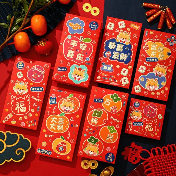 BAO LÌ XÌ Tết 2024, Set Bao Lì Xì Giáp Thìn Trái Cây chữ viền Gold In Nổi ( Set 6Cai 6 mẫu ) giá sỉ - giá bán buôn