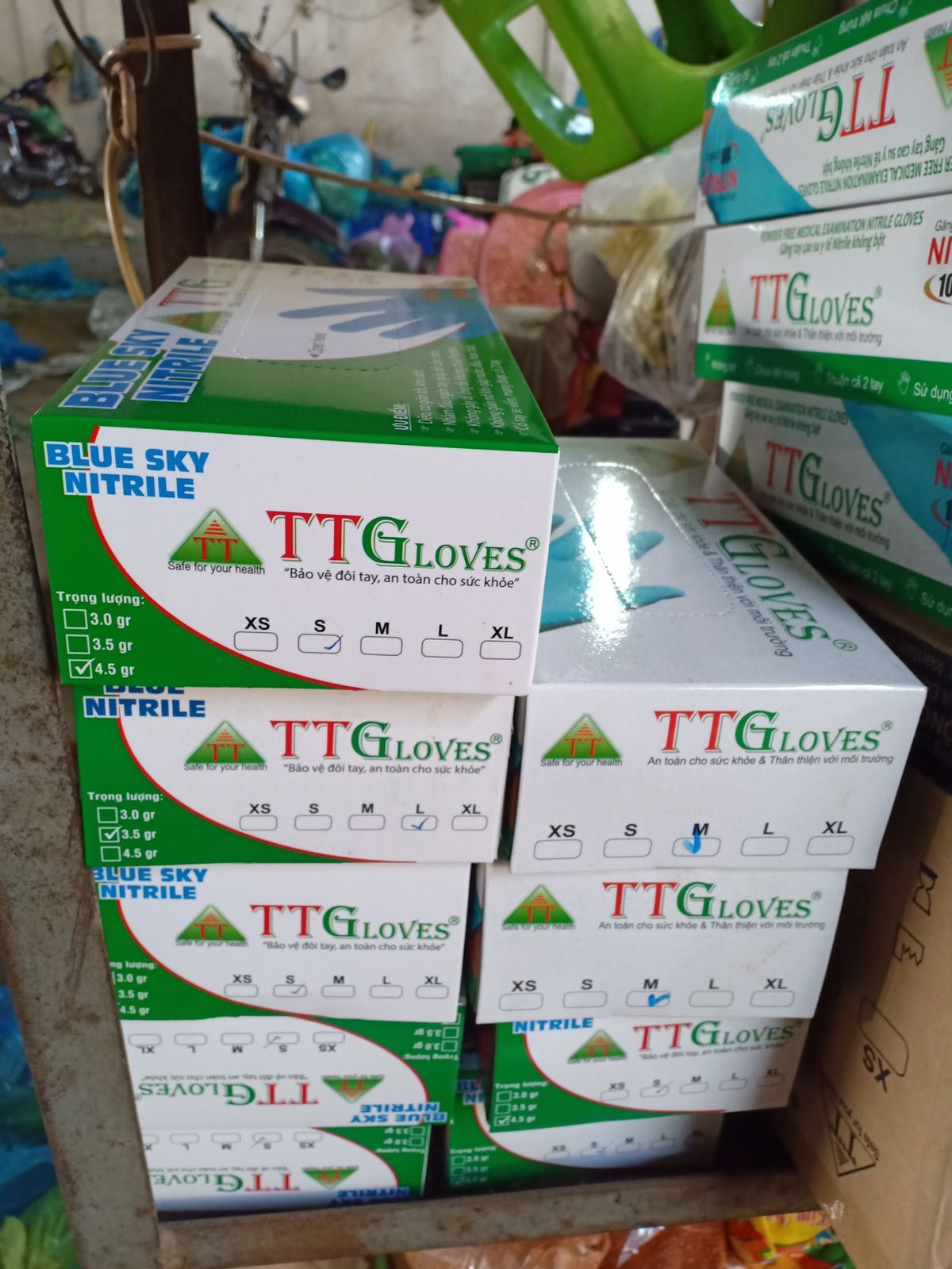 Găng tay y tế Nitrile không bột màu xanh dùng trong y tế, thủy sản, thực phẩm.