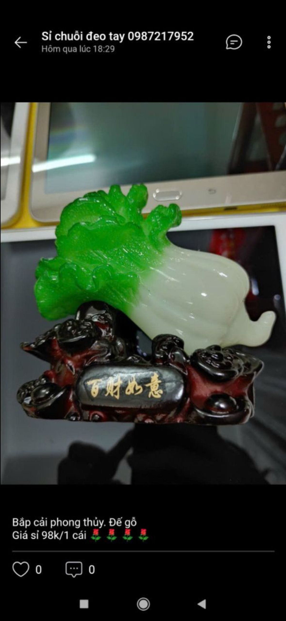 Bắp cải phong thủy đẹp đế gỗ nha vật phẩm phong thủy giá sỉ/bán buôn