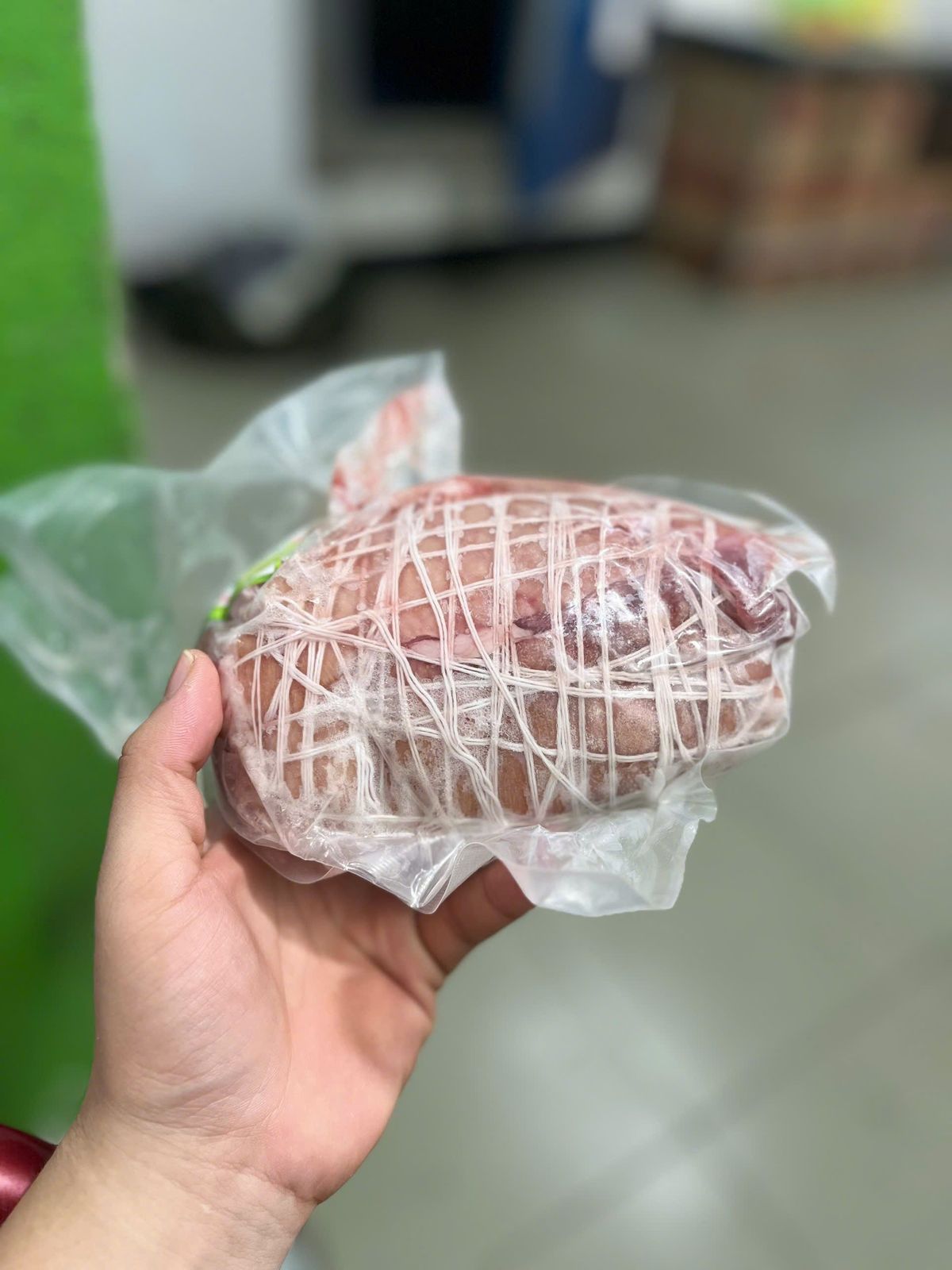 Chân giò lọc sạch xương, ướp tiêu thơm nức, bó chặt cuộn chỉ. Được lọc từ bắp nguyên chiếc nên thịt tròn thớ, ko vụn, rất đẹp và ngon. Bắp giò heo rút xương bó chỉ