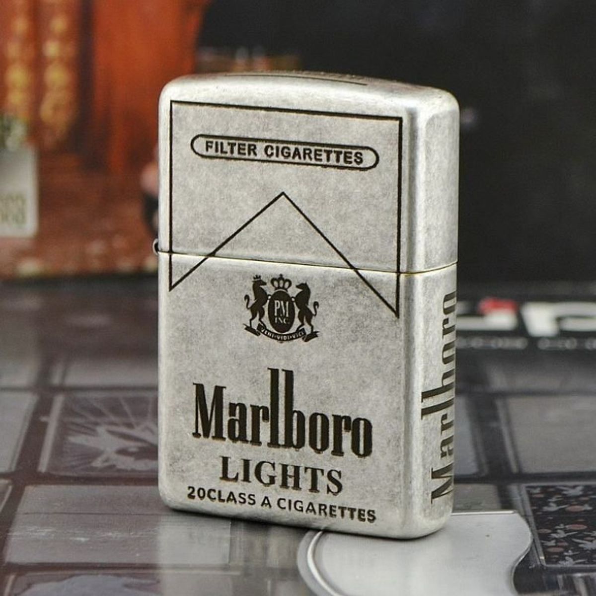 Bật Lửa ZIPPO Mỹ, Bật Lửa ZIPPO USA Hình THUỐC Marlboro Màu Bạc Cổ Điển Xài Xăng Có Tem Đỏ