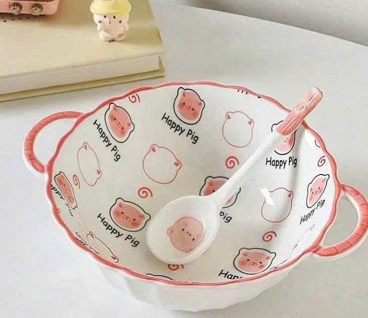 BÁT SỨ 2 QUAI HỌA TIẾT KÈM MUỖNG CUTE giá sỉ - giá bán buôn