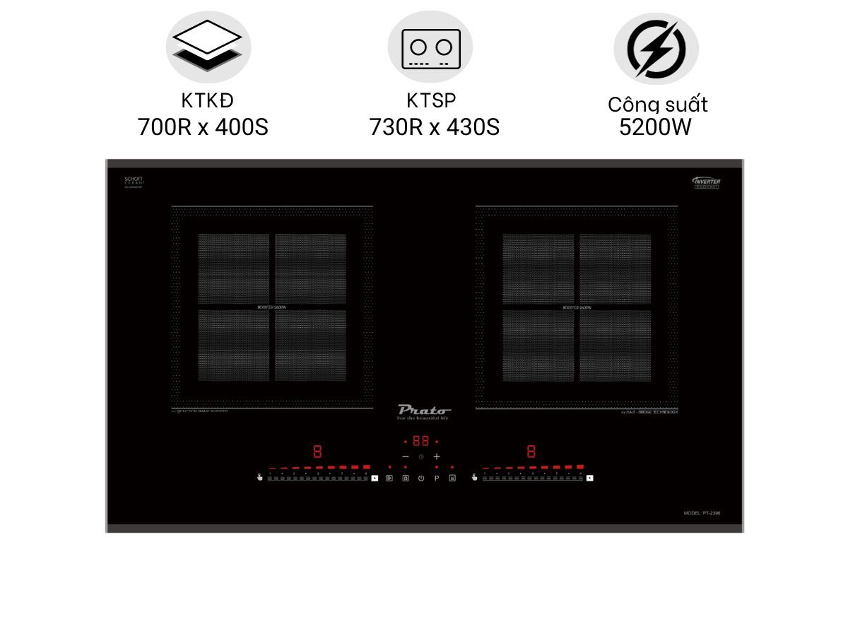 Bếp từ Prato PT-2396 thiết kế 2 vùng nấu sang trọng