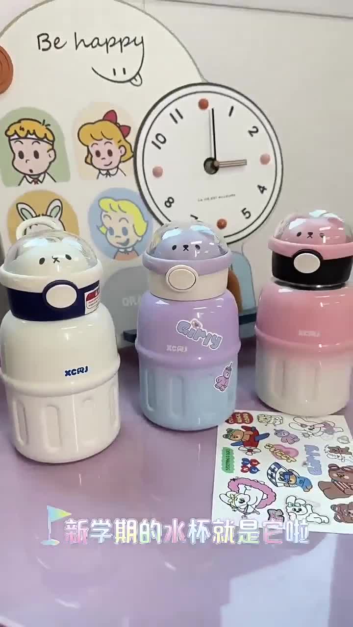 BÌNH GIỮ NHIỆT GẤU KÈM STICKER DÁN CUTE