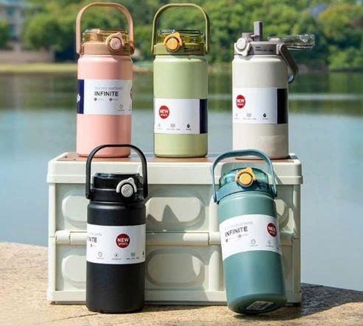 Thiết kế tiện lợi: Miệng bình rộng dễ dàng cho đá và vệ sinh, có tay cầm, nắp kèm cốc và một số mẫu có thêm quai xách, dây đeo hoặc ống hút.