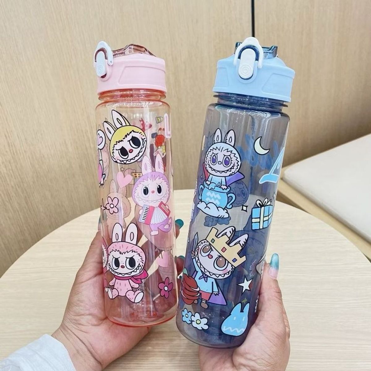 Bình Nhựa Labubu 750ml Có Ống Hút, Bình Uống Nước Cho Bé Hoạt Hình Dễ Thương