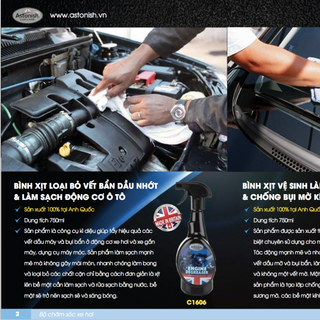 Bình xịt vệ sinh kính xe ô tô Astonish được sản xuất theo phương thức đặc biệt chuyên sử dụng cho mặt kính và gương của ô tô. Tác động mạnh mẽ và nhanh chóng giúp loại bỏ các vết dầu mỡ và bụi bẩn, làm cho bề mặt kính sạch bóng và không một vết mờ. Một tính năng khác được thêm vào sản phẩm là tạo lớp chống hơi nước để giúp ngăn các vệt sương mờ, các bề mặt kính của xe sẽ trở nên trong suốt.