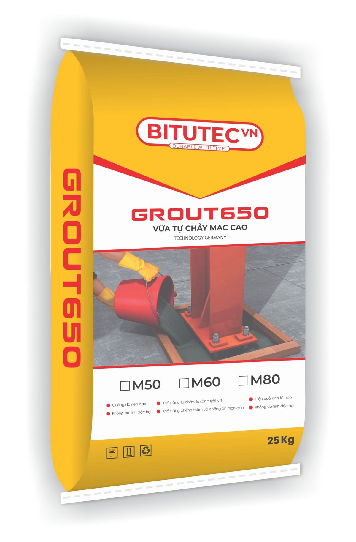 BITUTEC GROUT 650 là loại vữa rót trộn sẵn gốc xi măng công nghệ Đức, có khả năng tự chảy, tự san phẳng, không co ngót, cường độ cao, khả năng chống thấm và chống ăn mòn cao
