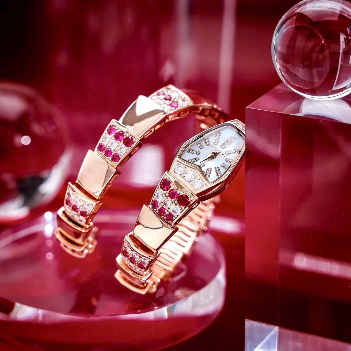 BLVGARI 𝐒𝐞𝐫𝐩𝐞𝐧𝐭𝐢 𝟏𝟖𝐊 𝐑𝐨𝐬𝐞 𝐆𝐨𝐥𝐝 𝐃𝐢𝐚𝐦𝐨𝐧𝐝 𝐚𝐧𝐝 𝐑𝐮𝐛𝐲 𝐐𝐮𝐚𝐫𝐭𝐳 𝐋𝐚𝐝𝐢𝐞𝐬 𝐖𝐚𝐭𝐜𝐡