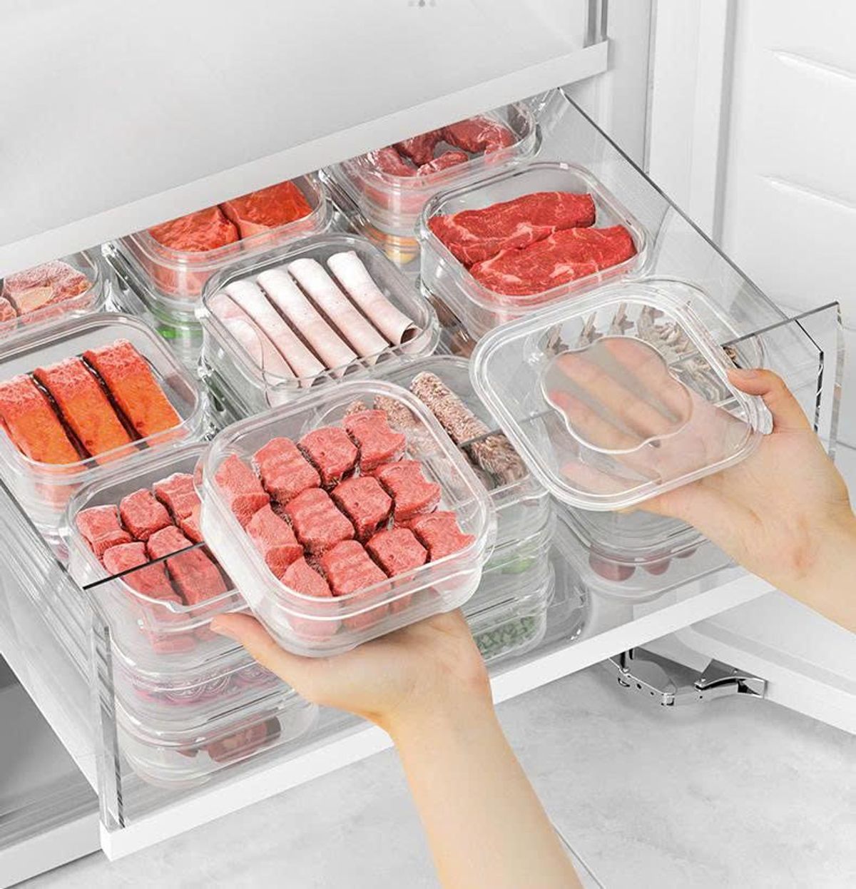 - Thiết kế gọn nhẹ, dễ xếp chồng, tiết kiệm không gian tủ lạnh.