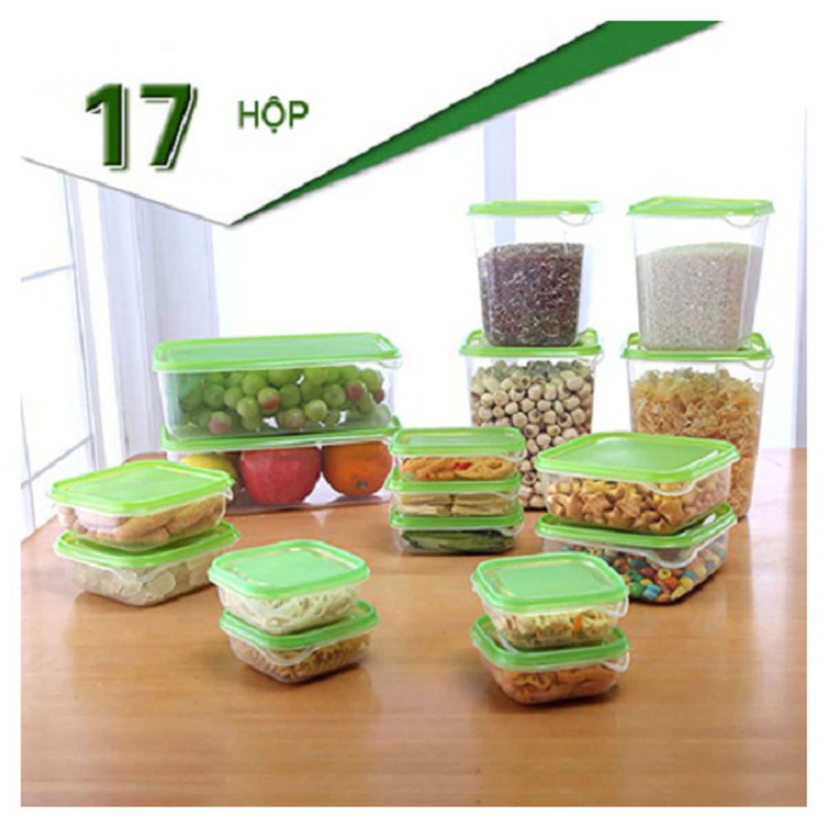 17 hộp với 7 kích cỡ khác nhau, rất tiện dụng để phân chia, bảo quản thực phẩm một cách khoa học
