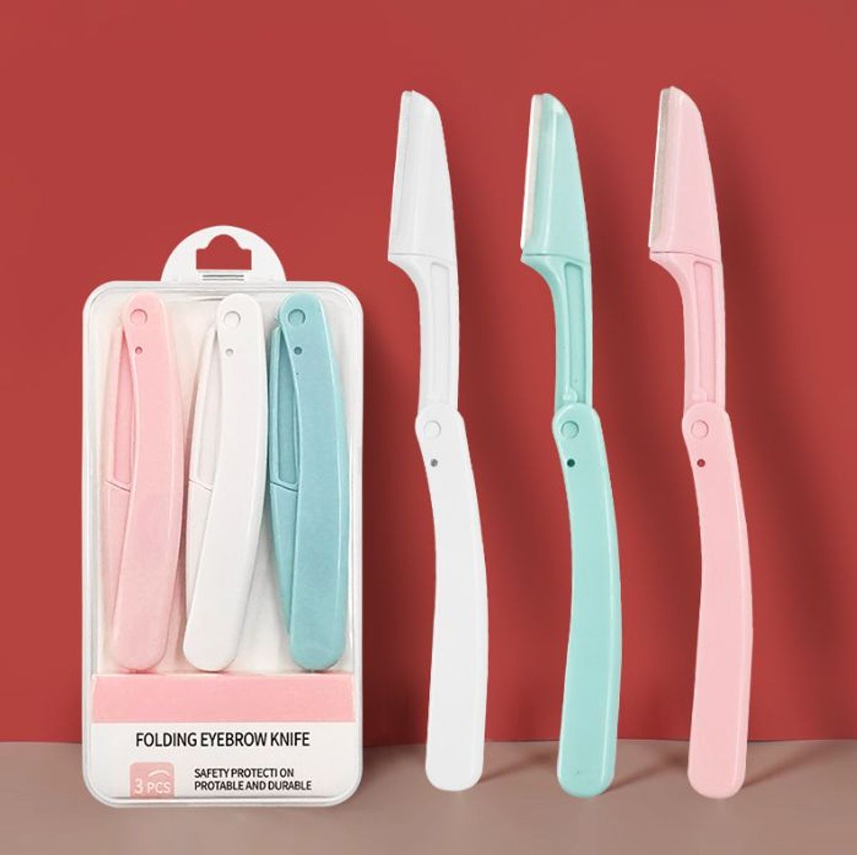 - Tên sản phẩm: Bộ 3 dao tỉa lông mày an toàn có thể gập chống trầy xước dành cho người mới bắt đầu