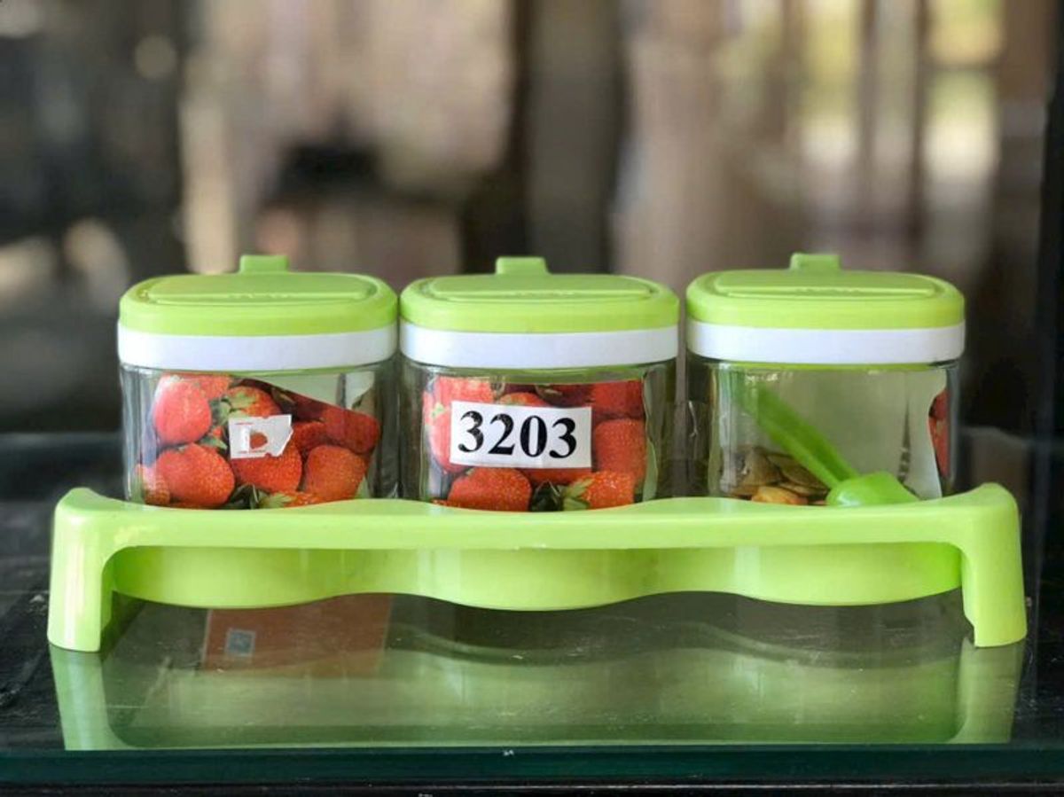 Bộ 3 Hũ Gia Vị Thủy Tinh Màu 3203 ( THÙNG 24B )