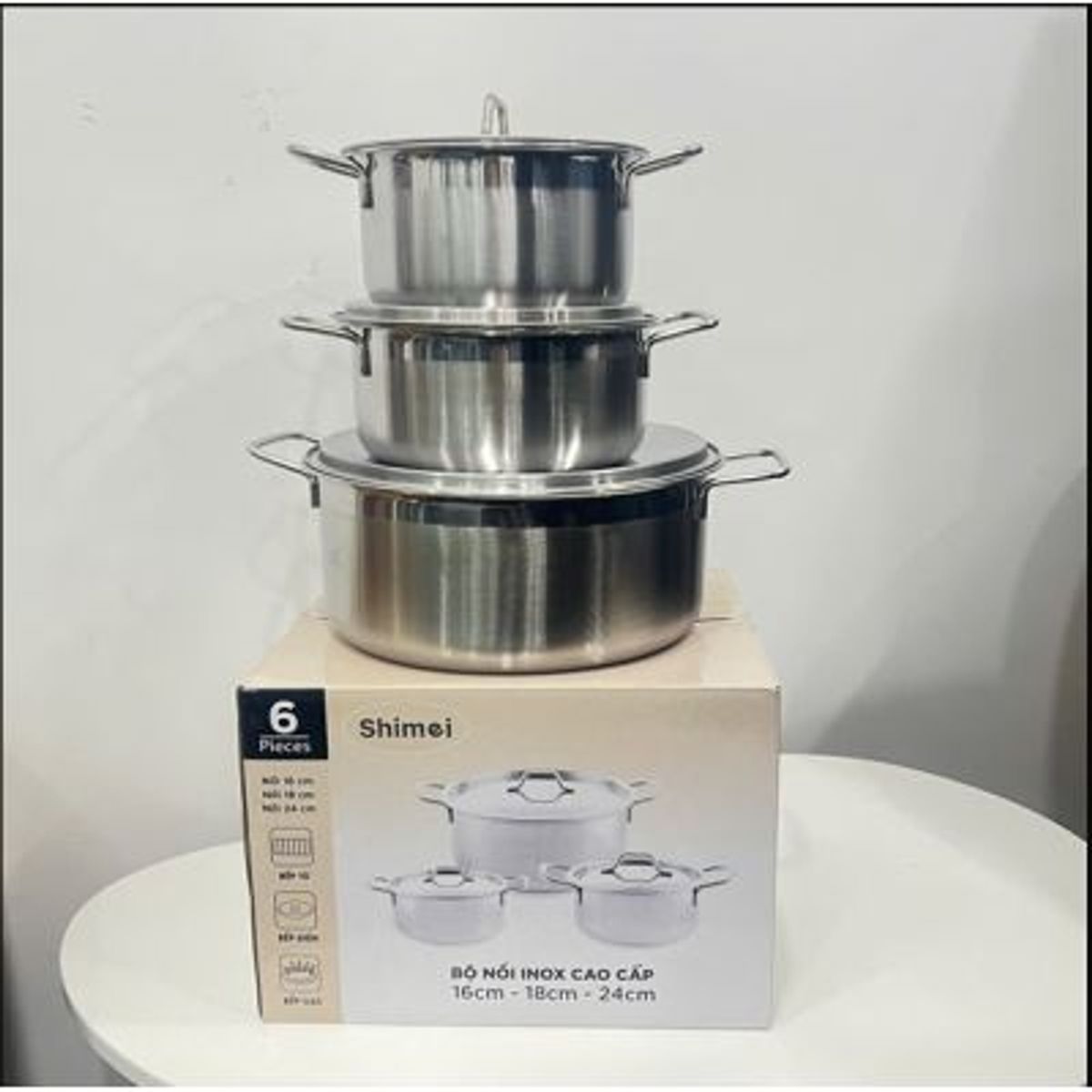 Bộ 3 Nồi Inox Shimei 16/18/24cm – Bền Đẹp, An Toàn, Dẫn Nhiệt Nhanh🌟 Giới Thiệu Sản Phẩm