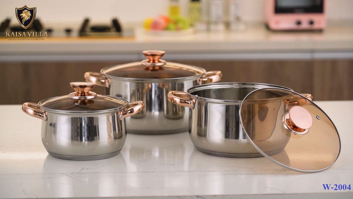 Bộ 3 nồi inox 5 đáy W-2004 thiết kế bền đẹp, an toàn với sức khỏe!!!!!