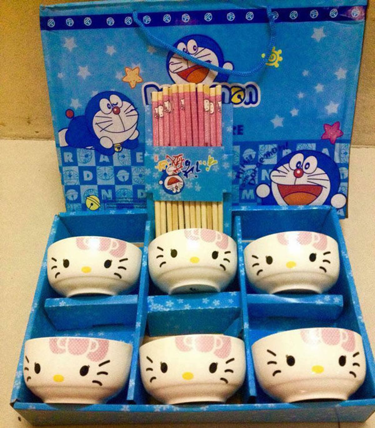 – Tên sản phẩm: Bộ 6 Bát Đũa Hello Kitty Xuất Nhật
