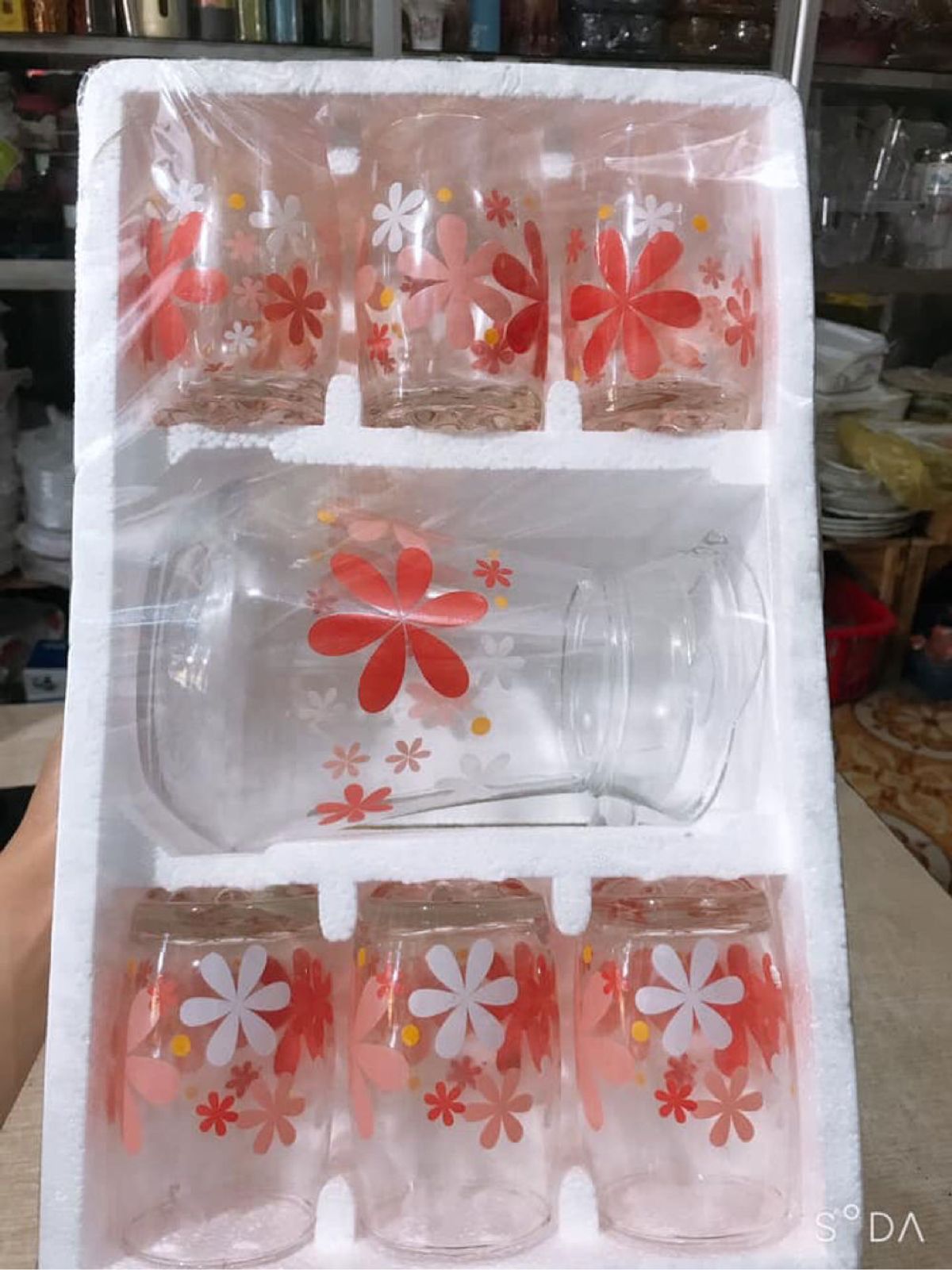 Bộ 6 cốc + 1 bình nước thủy tinh hàng Việt Nam cao cấp đóng hộp quà đẹp 20/11 e về số lượng lớn các hoa luôn a,rẻ đẹp là có thật các chị ơi
