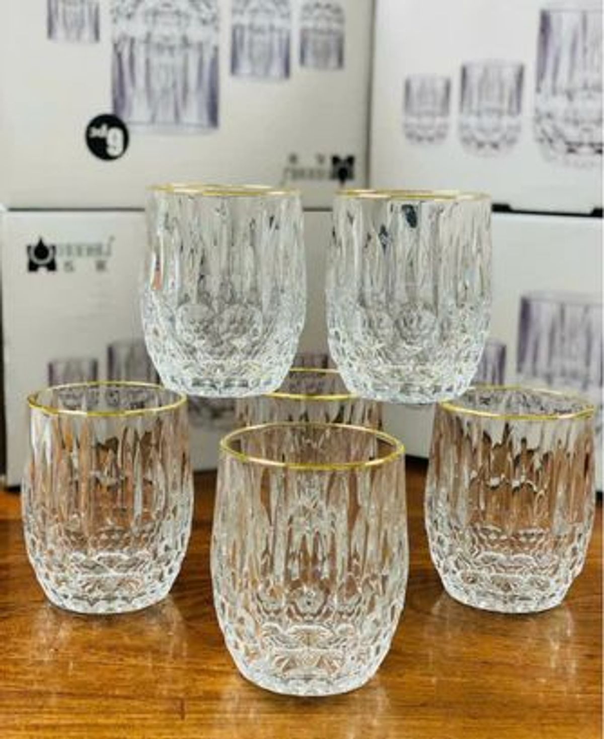 Bộ sản phẩm gồm 6 ly trắng bầu viền vàng
