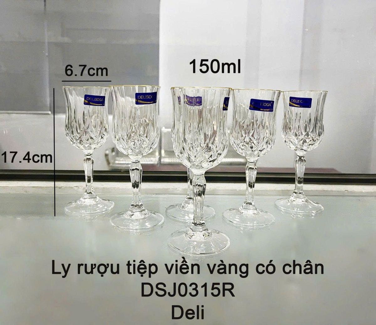 BỘ 6 LY THUỶ TINH UỐNG RƯỢU VIỀN VÀNG CÓ CHÂN DSJ0315R (T8)