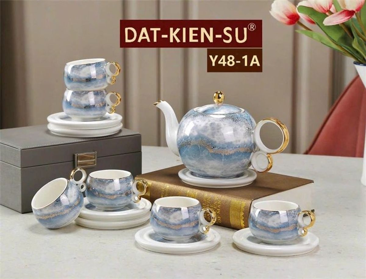 Ấm chén được làm từ chất liệu men cao cấp, có viền vang đẹp mắt. Sản phẩm chắc chắn sẽ tô điểm cho không gian của bạn. giúp không gian của bạn thêm phần sang trọng