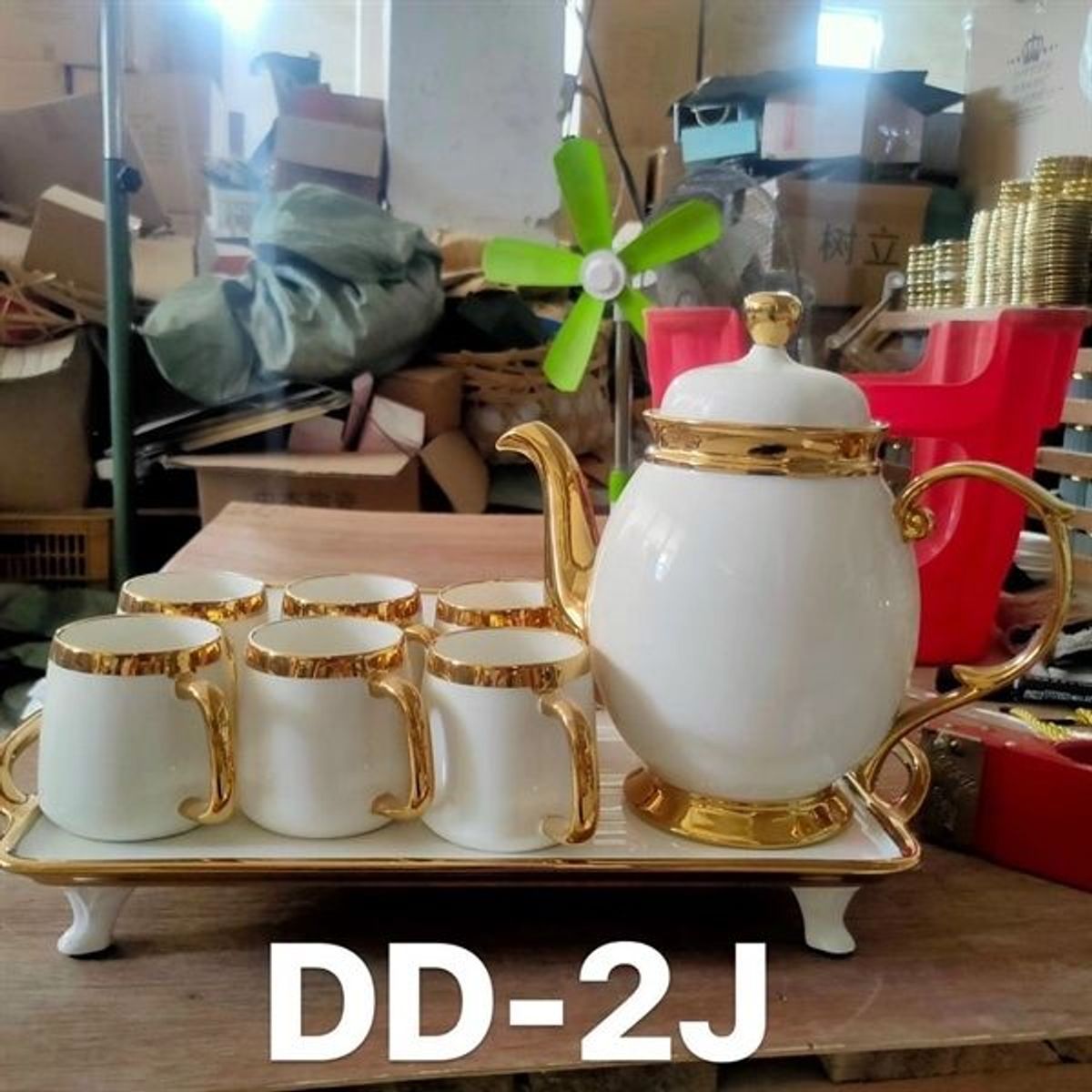 Bộ ấm chén bao gồm: 6 cốc sứ, 1 ấm sứ, 1 khay.