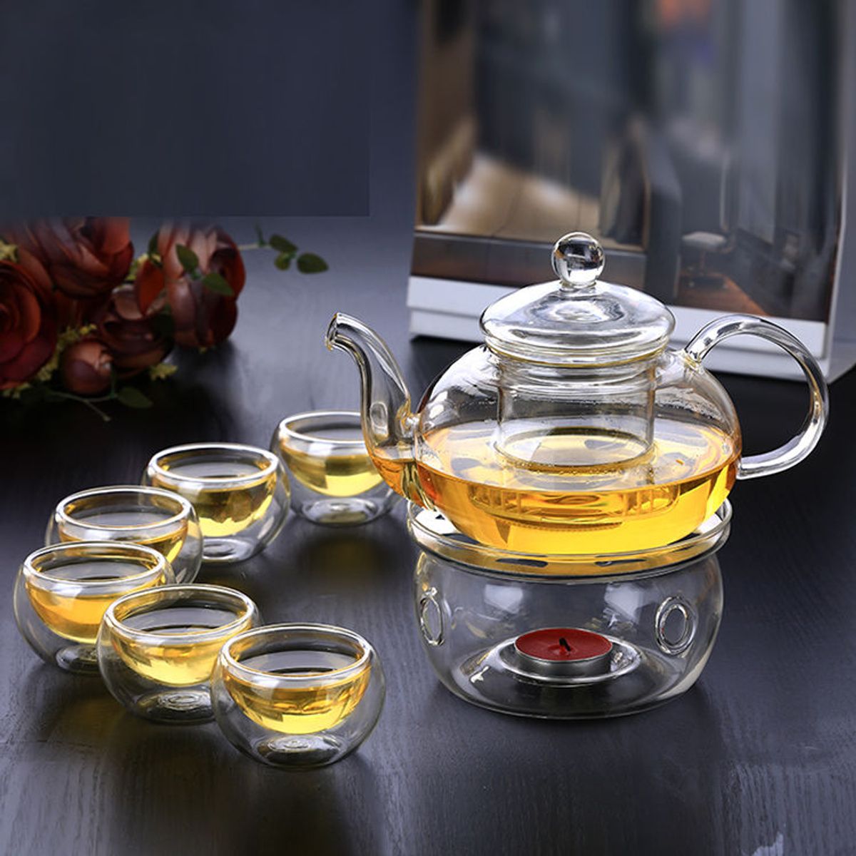 Bộ Ấm Chén Thuỷ Tinh 2 Lớp Bếp Nến