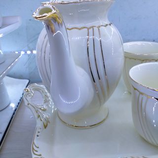 Bộ ấm chén pha trà kèm khay TRÒN sứ NGÀ có chân