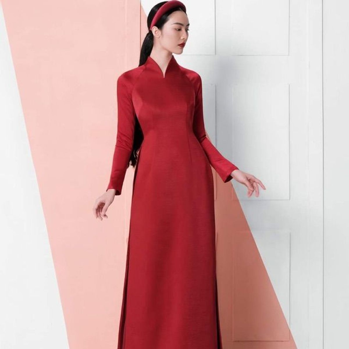 BỘ ÁO DÀI LỤA TÂY THI ĐỎ ĐÔ