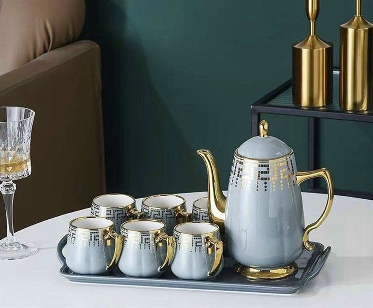 Ấm chén được làm từ chất liệu men cao cấp, có viền vang đẹp mắt. Sản phẩm chắc chắn sẽ tô điểm cho không gian của bạn. giúp không gian của bạn thêm phần sang trọng