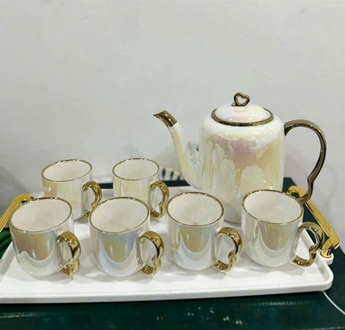 Bộ trà sứ hoa vân đá phong cách Bắc Âu cao cấp kèm khay sứ mạ vàng sang chảnhhh. Trang trí phòng khách, thưởng trà, làm quà tặng...