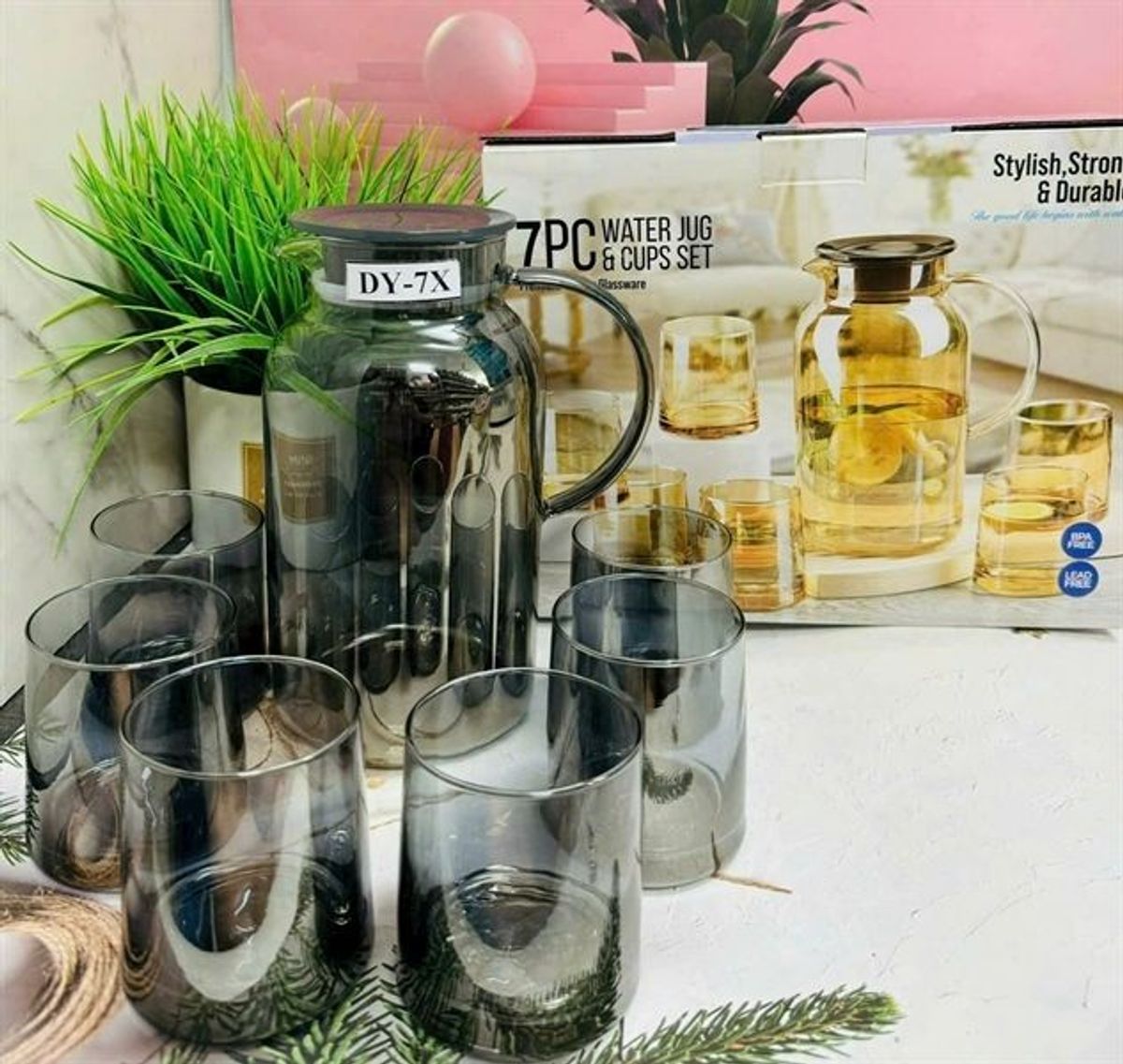 Bộ Bình 6 Cốc Thủy Tinh Xám , Vàng DY-7X ( THÙNG 8B )